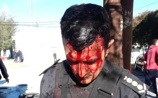 Personal de la policía de la provincia, que se encontraba en el lugar resguardando la seguridad, debió actuar para tratar de disuadir la acción del grupo de personas. En el accionar de los uniformados, resultó herido en su cabeza el Jefe de Policía, Miguel Gómez el cual recibió 8 puntos de sutura.