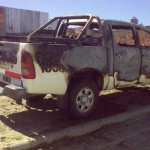 Luego de los disparos que se extendieron por calles de los mencionados barrios, se supo que una camioneta Toyota Hilux (dominio ISA 787), de color blanca de la empresa GeoPatagonia, había resultado incendiada. El vehículo que se encontraba estacionado en calle Sargento Acosta al 3100, de barrio Isidro Quiroga resultó totalmente incendiado.