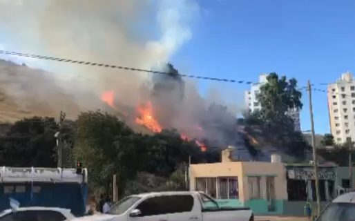 Esta tarde pasadas las 18 horas, se produjo un incendio de pastizales en el cerro frente al Hospital Regional. Vecinos desesperados, para que el fuego no llegue a sus viviendas, ayudaban con agua para poder aplacar las llamas.