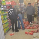 Sujetos que hasta anoche no habían podido ser detenidos, intentaron incendiar dos supermercados cuando el intendente estaba por dar su balance de gestión en el Centro Cultural. El Jefe Comunal tuvo que suspender su discurso para trasladarse a los supermercados donde los delincuentes intentaron incendiar parte de las instalaciones.