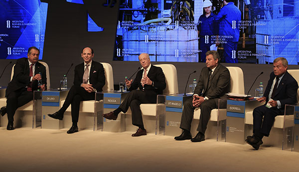 En la mesa sectorial Oil & Gas, en el Foro de Inversiones, participaron el ministro de Energía, Juan José Aranguren; el Ceo de Shell, Teófilo Lacroze; del presidente de Dow Chemical Argentina, Gastón Remy, y el vice chairman de Bridas, Marcos Bulgheroni, quienes coincidieron en resaltar el potencial de Vaca Muerta y las condiciones a generar para alcanzar su desarrollo.