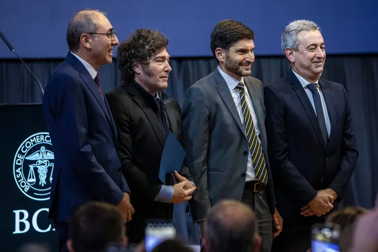 “Tenía otro discurso pero como en la Argentina pasan cosas tuve que modificarlo”, inició Milei su discurso en Santa Fe, donde se festejó el 140° aniversario de la Bolsa de Comercio de Rosario, del que también participaron el gobernador, Maximiliano Pullaro, y el intendente rosarino, Pablo Javkin. El mandatario llegó acompañado de su pareja Amalia “Yuyito” González, su hermana Karina Milei y el vocero presidencial, Manuel Adorni.