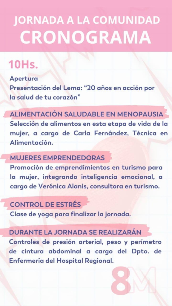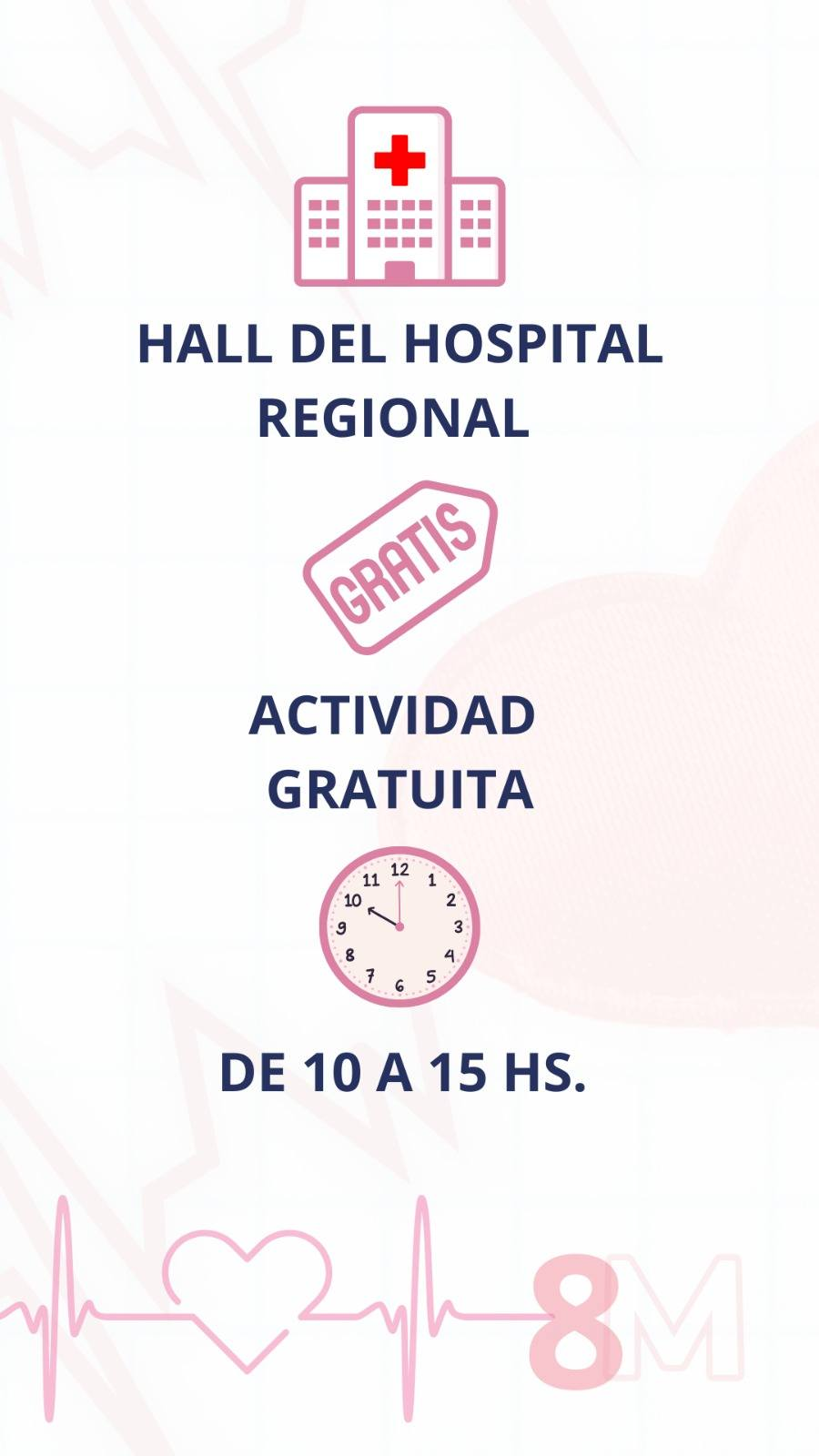 Además, durante toda la jornada, el Departamento de Enfermería del Hospital Regional realizará controles gratuitos de presión arterial, peso y perímetro de cintura abdominal.