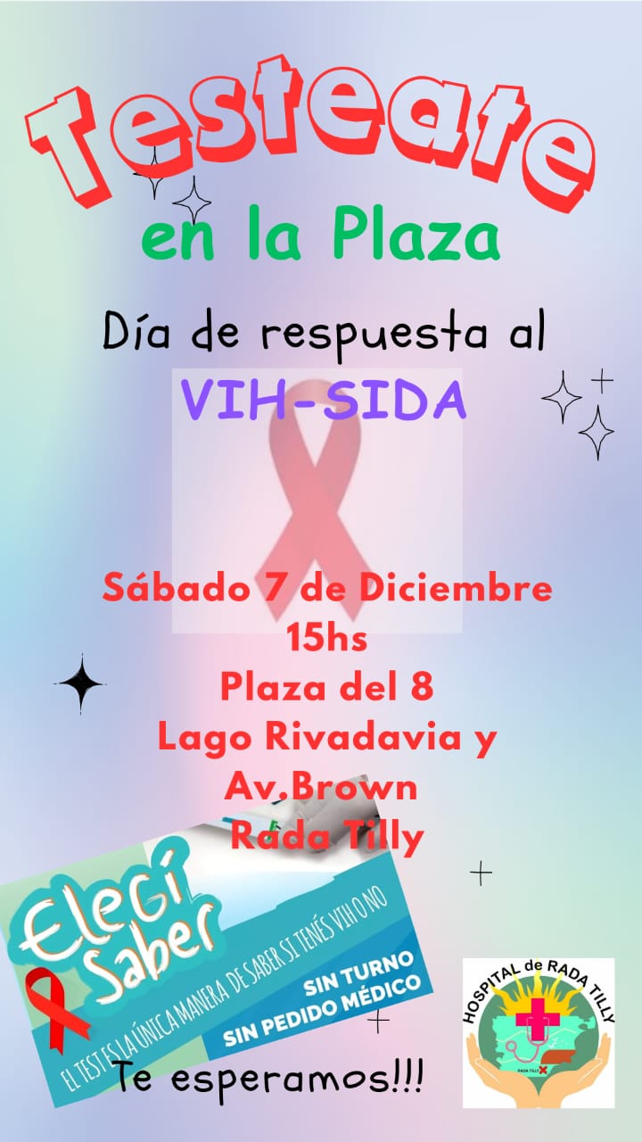 En alusión al día de la lucha contra el sida del pasado 1 de diciembre, este sábado se realizarán testeos en de VIH. Los mismos se llevarán adelante en la Plaza San Martín conocida popularmente como plaza del 8 ubicada en avenida Brown y Lago Rivadavia a partir de las 15 hs.