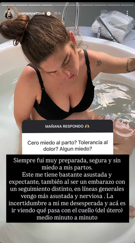 Al recibir esa consulta, Juana compartió una foto para recordar el día que nació Belisario -su segundo hijo- y aseguró: “Siempre fui muy preparada, segura y sin miedo a mis partos”.