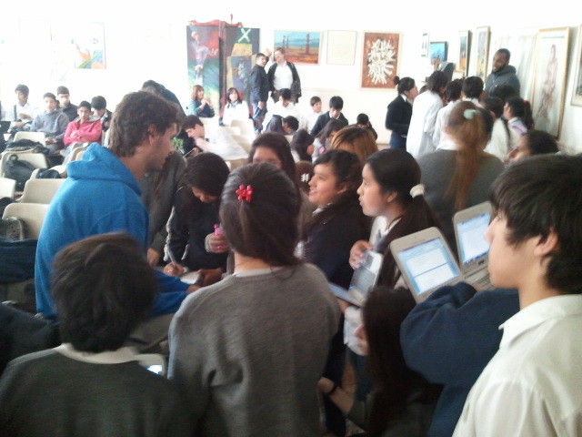 El club eligió para la iniciativa al pívot norteamericano Kaheim Seawright, que habla el inglés y muy poco español, y al ala-pívot Fabricio Vay que vivió muchos años en Europa y jugó en Estados Unidos, por lo cuál podía combinar ambos idiomas. Los chicos comenzaron tímidos ante la presencia de los jugadores de Liga Nacional, pero después se entusiasmaron con la iniciativa y con netbooks en mano no pararon de hacerles preguntas.