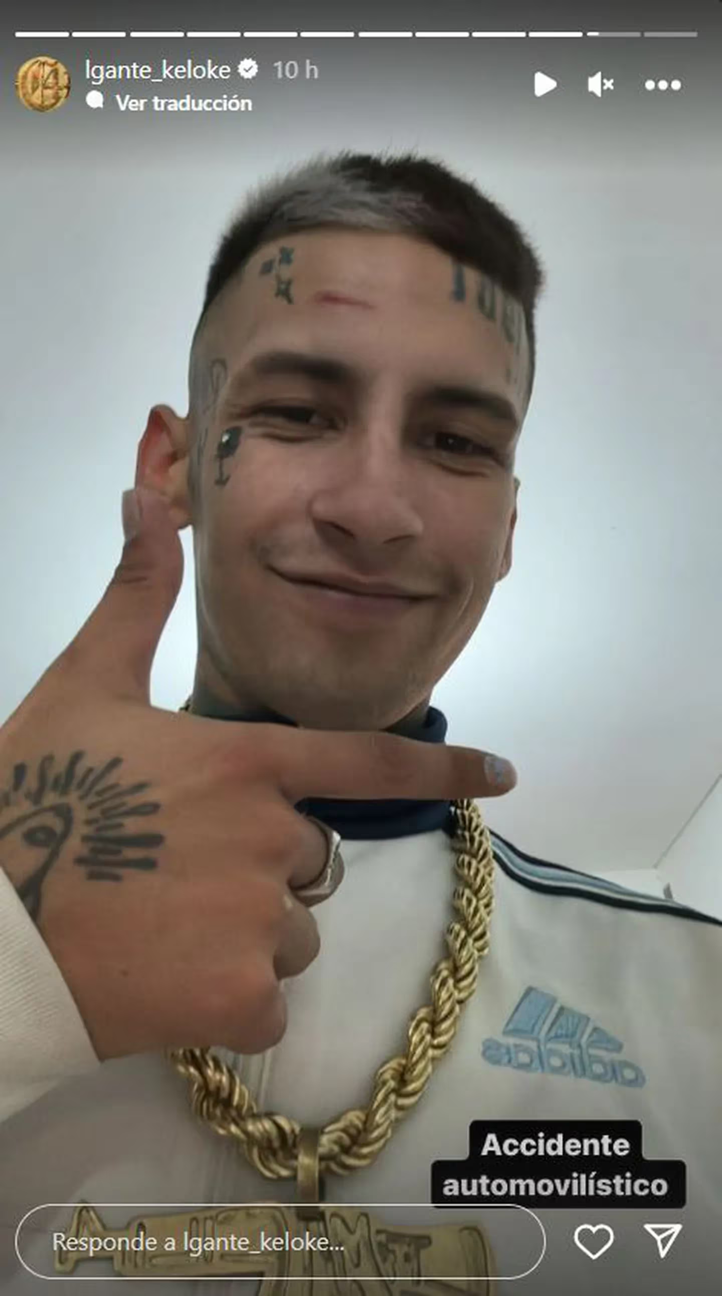 A través de historias de Instagram, el referente de la Cumbia 420 registró instantáneas de la lastimadura que le quedó en la frente luego del incidente vial que, aparentemente, habría sufrido sin intervención de terceros.