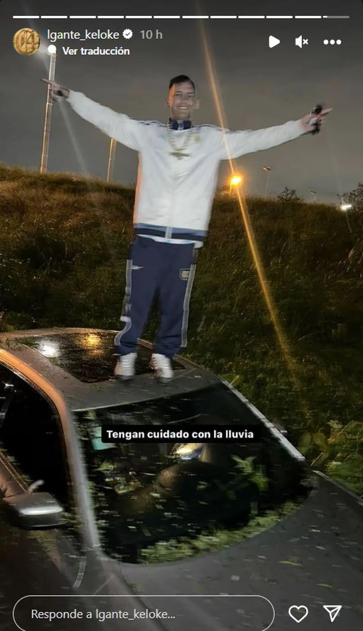 “Tengan cuidado con la lluvia”, escribió en la historia, mientras posaba para la cámara con los brazos abiertos. El músico se subió al techo del auto accidentado, mientras sonreía para la cámara a pesar del mal trago que había vivido minutos antes.