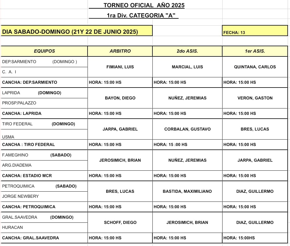 Se jugará la fecha 13 del Torneo Apertura A este fin de semana y el puntero CAI tendrá una dura prueba al visitar a Sarmiento en la Ciudad de los Lagos. Será el domingo a las 15 horas y el arbitraje estará a cargo de Luis Fimiani.