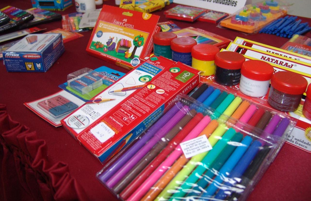 En esta canasta básica se encontraban 23 productos: 2 cuadernos escolar de 24 hojas rayadas; 1 cuaderno de 48 hojas rayadas; 1 cuaderno tapa dura escolar por 42 hojas rayadas; 1 block de hojas de dibujo blancas; 1 block de hojas de dibujo de colores; 2 bolsitas de papel glasé; 1 set de acuarelas por 12 más pincel; 2 lápices negros; 2 gomas escolares; 1 sacapuntas escolar; 1 tijera escolar; 1 set de plastilinas tubitos por 10; 1 regla flexible; 1 voligoma 30 g; 1 caja de crayones por 12; 1 caja de lápices largos por 12; 1 caja de marcadores por 10 Filgo; y una mochila de tiras.
