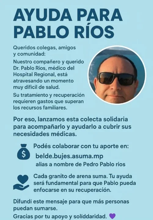 El doctor Pablo Ríos, médico del Hospital Regional y padre de tres hijos, fue diagnosticado hace tres meses con leucemia aguda y permanece internado desde entonces, a la espera de un trasplante de médula ósea.