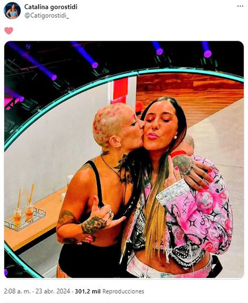 Tras el programa, Catalina compartió un tierno posteo en sus redes. Tuiteó una foto en la que aparece al lado de Furia, mientras la abraza y la instructora deportiva le da un beso en la mejilla. La instantánea la publicó junto a un emoji de un corazón.
