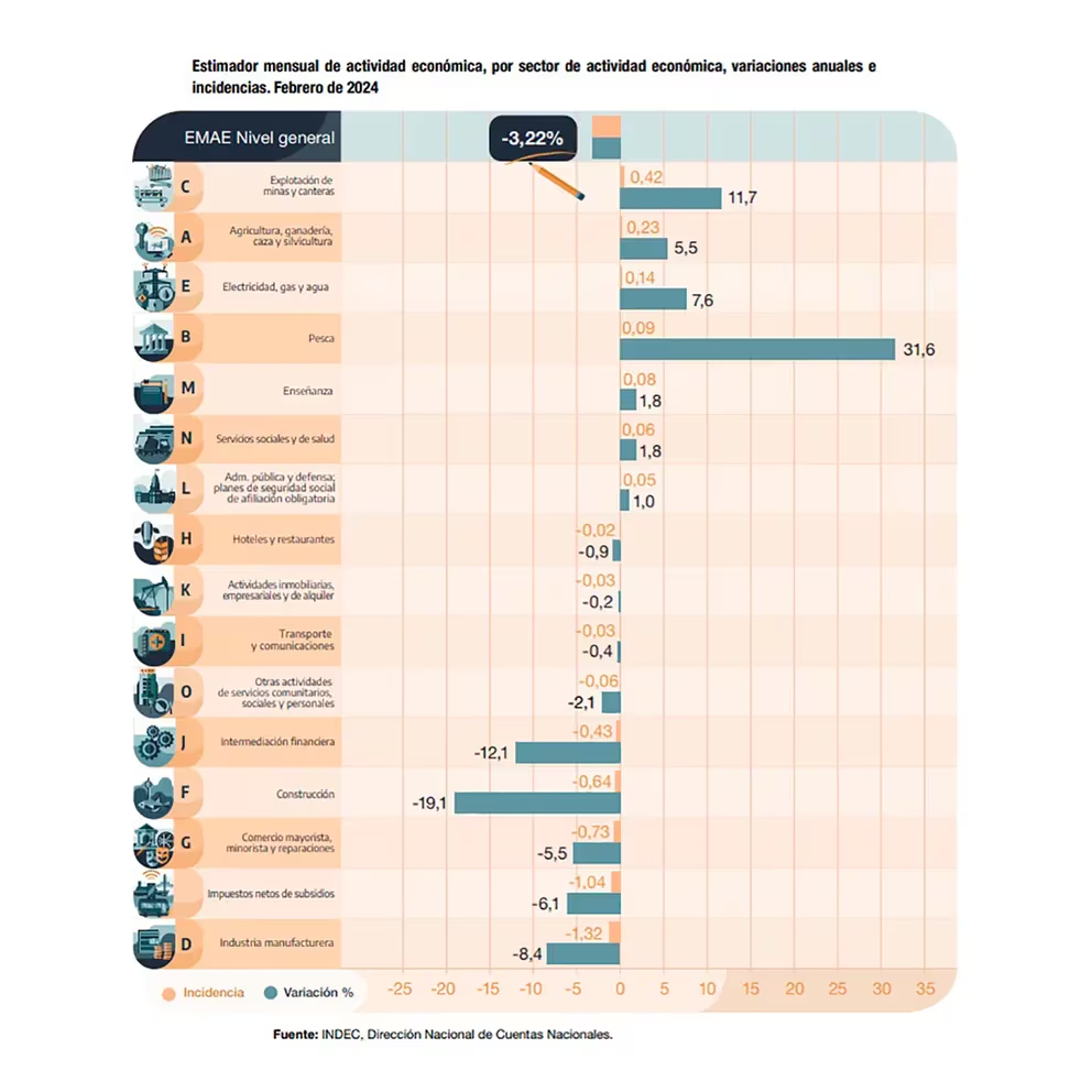 El Estimador Mensual de Actividad Económica (EMAE) que publicó ayer el INDEC reveló que en febrero la caída de la economía fue marginal en relación a enero, apenas 0,2%. Esto marcó una fuerte desaceleración del ritmo del derrumbe luego de tres meses pésimos (de noviembre a enero). Incluso la caída interanual se moderó de 4% en enero a 3,2% en febrero.