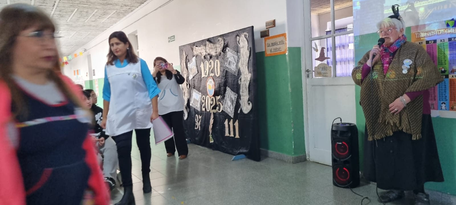 La Escuela N°111 “Mar Argentino” de Km 5 cumplió 105 años y lo festejó con una jornada especial llena de recuerdos y emociones. Valeria Álvarez, directora del colegio, puso en valor la historia del lugar, destacando la importancia de recordar a quienes pasaron por sus aulas a través de fotos, videos y un código QR para compartir esas vivencias con todos.
