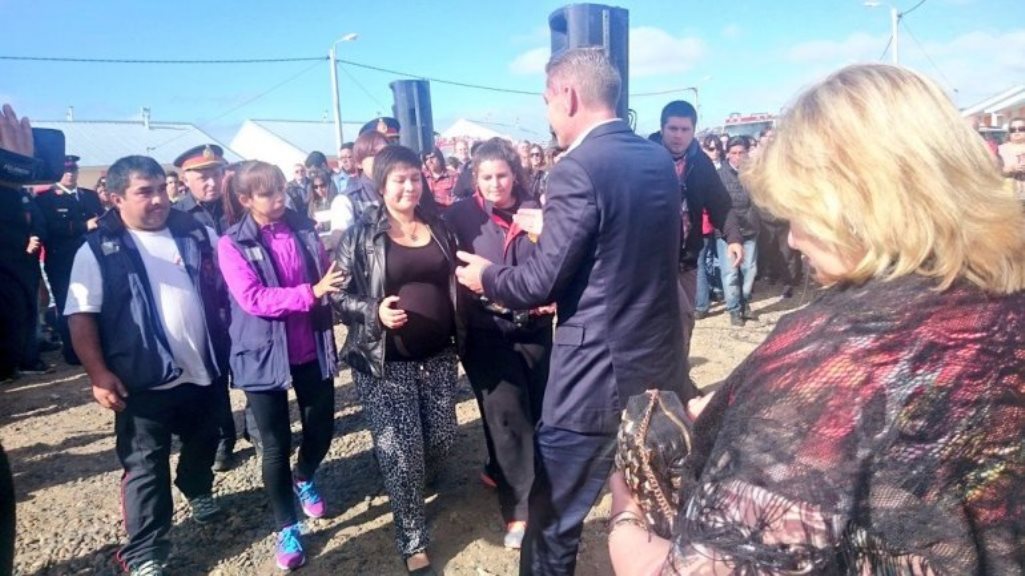 Evangelina Segovia, esposa del bombero fallecido en plena labor en el incendio del bar Irlanda el 20 de marzo, fue parte esta mañana de la entrega de viviendas, por parte del Gobierno de Chubut.