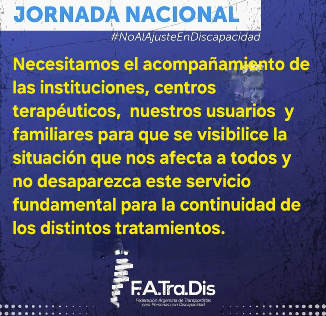 Esquivel expresó: “Invitamos a que nos acompañen mañana a las 10 de la mañana. Los prestadores de transporte somos un eslabón en la cadena entre la terapia y la familia” y sumó: “En pandemia llevamos comida, útiles escolares, terapeutas. Tenemos una labor social muy importante”.