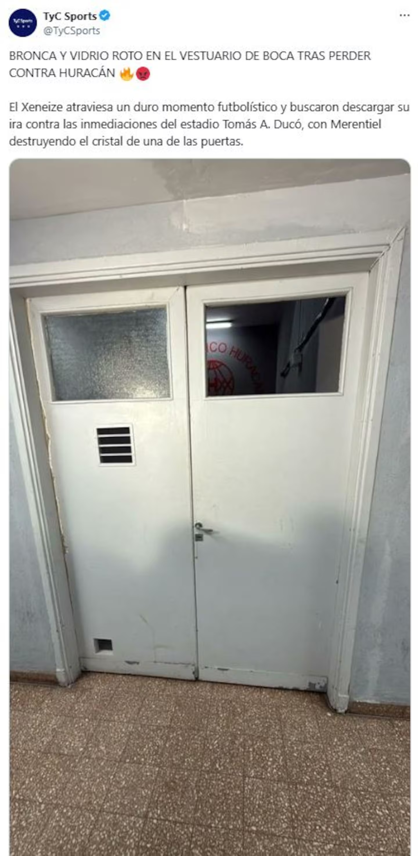 La frustración se adueñó del plantel de Boca tras la dura derrota ante Huracán en Parque Patricios. Y en medio del clima caliente, Miguel Merentiel protagonizó un momento de furia que terminó con el vidrio roto de una de las puertas del vestuario visitante del Palacio Ducó.