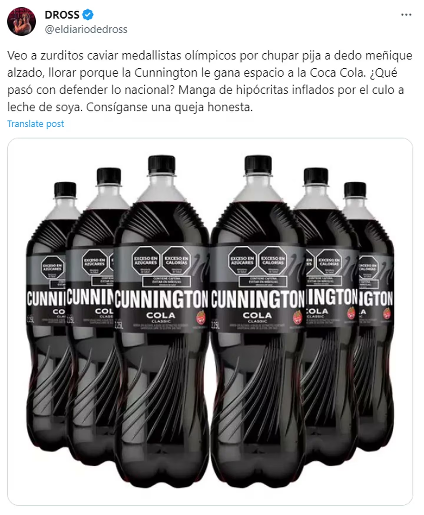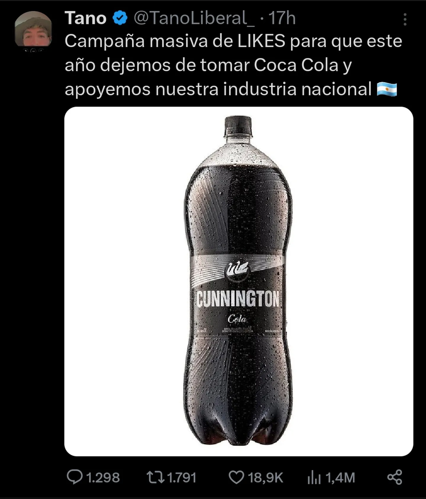 En los últimos días, un admirador de Javier Milei promovió la idea de empezar a consumir Cunnington en reemplazo de otras marcas internacionales con el objetivo promover la industria nacional, indica TN.