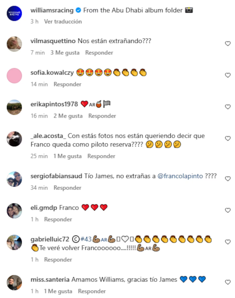 Tras el Gran Premio de Abu Dhabi, que dio por finalizada la temporada en la Fórmula 1, se vivieron tiempos muy emotivos para Franco Colapinto. Sin lugar en la grilla para el próximo año, el argentino se despidió de su equipo en Williams con varios posteos y emocionó a sus fanáticos. Sin embargo, en las últimas horas, los hinchas se sorprendieron ante una actitud inesperada de la escudería británica.