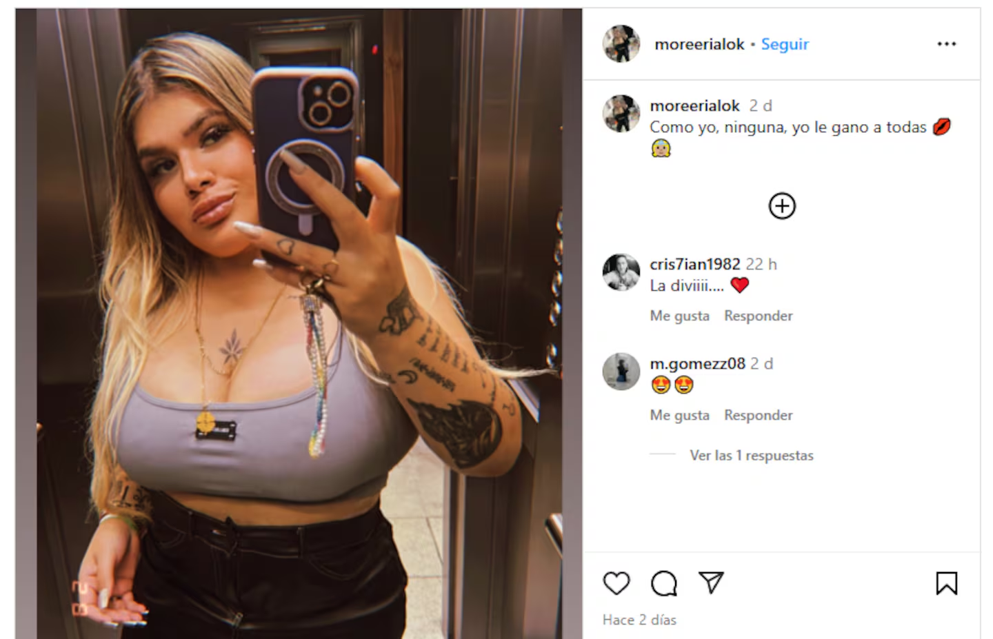 “Como yo, ninguna. Yo le gano a todas”, dice otra de las publicaciones que More compartió recientemente. La situación se dio este fin de semana mientras su ex, Facundo, festejaba su casamiento con Camila y compartía fuertes imágenes en sus redes sociales.