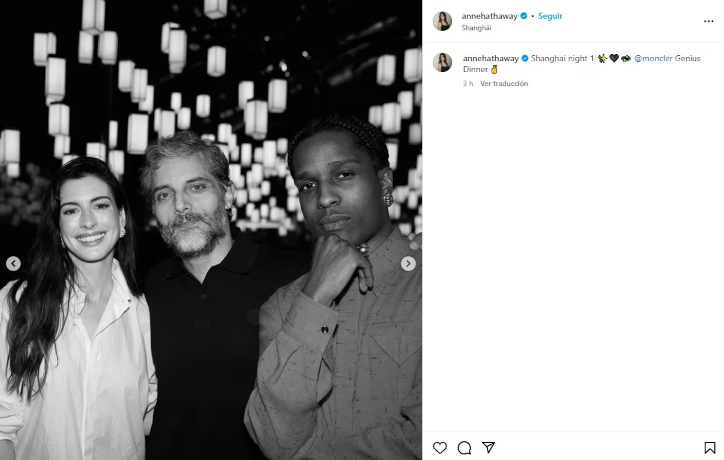 Furriel aparece en el feed de Hathaway, en una imagen en blanco y negro, en la que además está el famosísimo rapero A$AP Rocky, que también es una cara de la firma italiana. En otra foto, la actriz compartió una selfie con la cantante Rihanna.