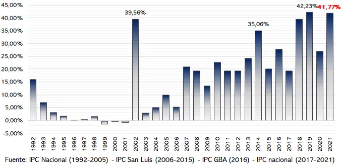 Todos estos saltos ocurren aunque el Gobierno piso el dólar oficial y las subas en las tarifas fueron de un dígito, muy por detrás de la evolución de los precios, precisamente como anclas anti inflacionarias; esta política no estaba presente en 2018 y 2019, los años con mayor inflación después del fin de la hiperinflación.