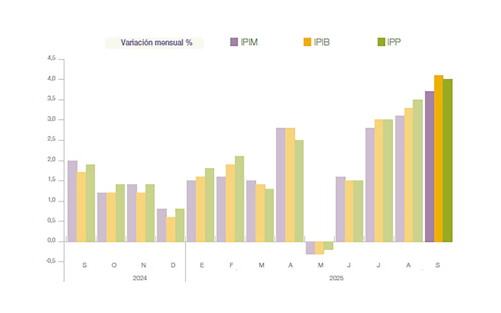 De acuerdo con el reporte oficial, el IPIM acumula en lo que va del año una variación de 20,0%, mientras que en la comparación interanual se ubica 24,2% por encima del nivel registrado en septiembre de 2024.