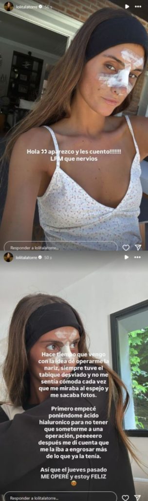 “Hace tiempo que vengo con la idea de operarme la nariz, siempre tuve el tabique desviado y no me sentía cómoda cada vez que me miraba al espejo y me sacaba fotos”, les contó a sus más de 600 mil seguidores de Instagram.