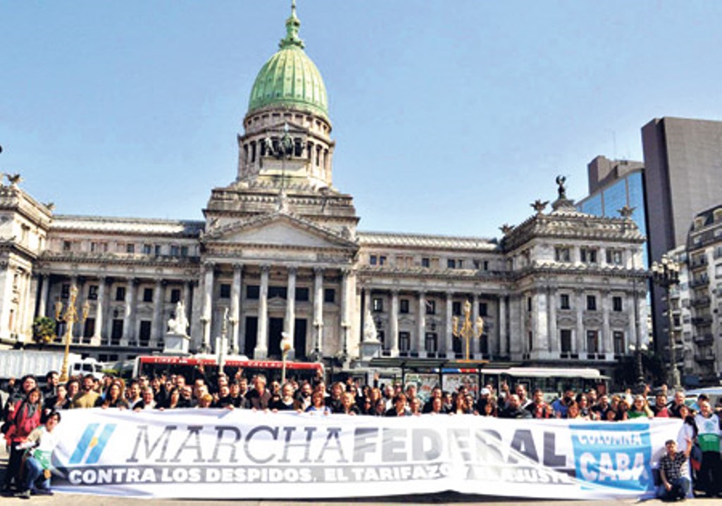 La movilización contra el ajuste macrista partió desde distintos lugares del país. Concluirá mañana frente a la Casa Rosada. Con el plan de recorrer el país para confluir en la Plaza de Mayo, ayer salieron desde las provincias más lejanas a la ciudad de Buenos Aires cinco caravanas de la marcha federal. El rechazo al tarifazo, los despidos y el ajuste son las consignas con las que, como ocurrió en los ‘90 con la marcha federal contra el menemismo, un amplio conjunto de Sindicatos, ahora junto a organizaciones sociales, cooperativas, Pymes, agrupaciones estudiantiles y organismos de derechos humanos salen a confrontar las políticas del PRO.