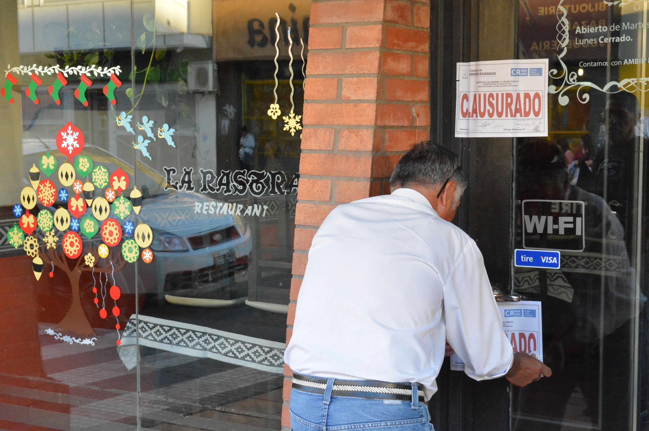 En un nuevo operativo de control encabezado por la Subsecretaría de Fiscalización, se procedió a la clausura del restaurante “La Rastra” ubicado en Avenida Rivadavia al 300, por falta de la habilitación comercial y condiciones precarias de seguridad e higiene. “Por determinación del intendente Linares, estamos trabajando firmemente para tener presencia con controles, en todos los rubros comerciales de la ciudad”, aseguró Daniel Campillay.