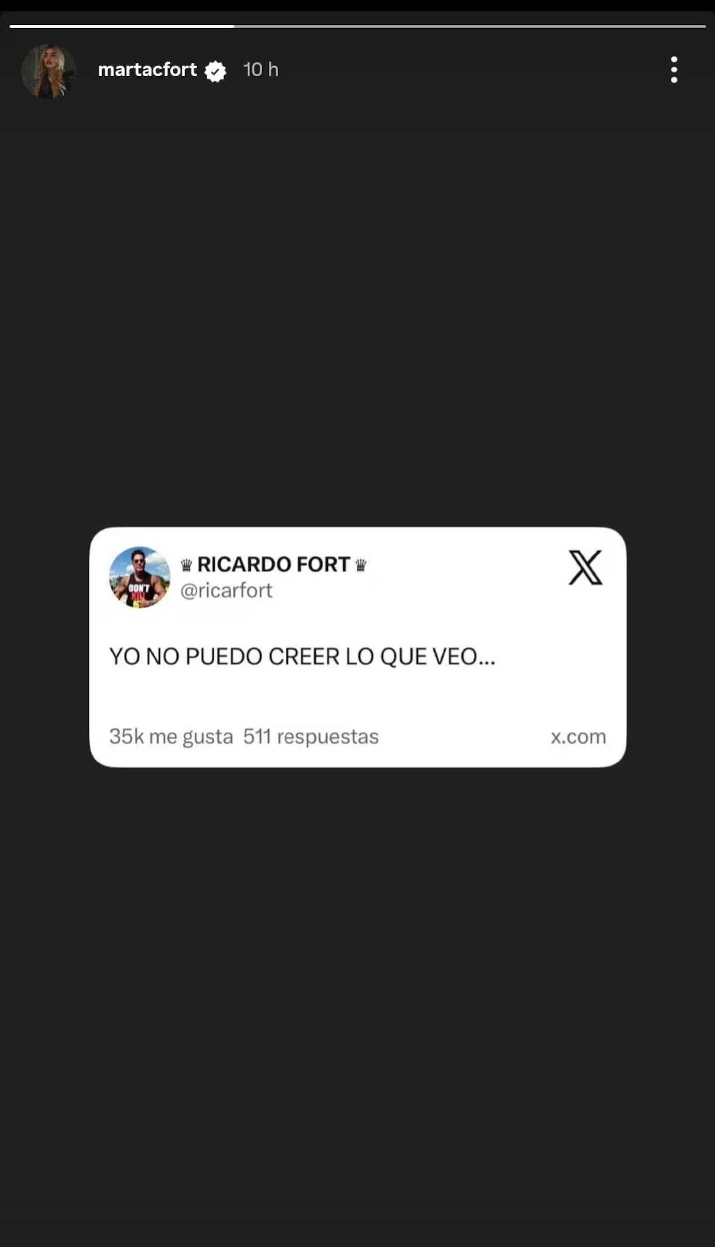 En ese contexto, Martita Fort compartió una historia en su Instagram en el que recordó una de las frases más icónicas de su papá. “Yo no puedo creer lo que veo…”, dice el tuit que “El comandante” había escrito hace unos años.