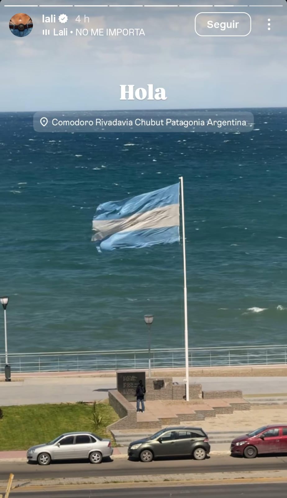 Lali Espósito está en Comodoro. Tras el éxito en Trelew, donde sus entradas se agotaron rápidamente, la estrella del pop nacional pisó la ciudad petrolera y compartió con sus seguidores una hermosa postal del mar con un saludo sencillo pero lleno de cariño: “Hola”, junto a la ubicación.