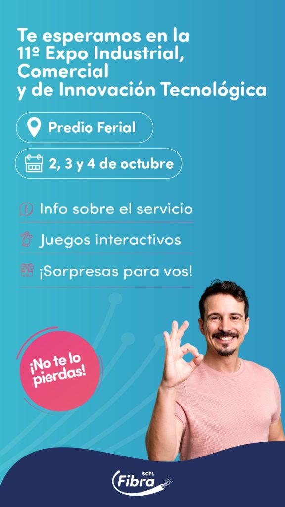 La Cooperativa estará presente en la 11° Expo Industrial, Comercial y de Innovación Tecnológica, que se realizará en el Predio Ferial, con un stand especialmente diseñado para que los visitantes puedan conocer en detalle los planes de internet, realizar consultas y acceder a beneficios exclusivos. Además, habrá juegos y premios sorpresa para toda la familia. El espacio podrá visitarse el jueves, viernes y sábado de 12:30 a 21:00 horas.