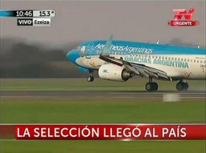 Ni una sonrisa o mueca parecida se vio en la cara de los jugadores al dejar el hotel Radisson, mucho menos al llegar al aeropuerto de Río de Janeiro y enterarse que debían esperar un tiempo ahí, porque en Ezeiza había una neblina dura que provocó el retraso general. Luego de un rato, el plantel pudo subirse al avión que, ya desde ahí, le mandaba un guiño: «Gracias Argentina», se leyó en la parte lateral, y bien grande. Luego de pisar tierra, cientos de hinchas que lo esperaron desde temprano, les hicieron sentir el orgullo argento. Banderas, cantos, fotos. Qué placer verte otra vez…