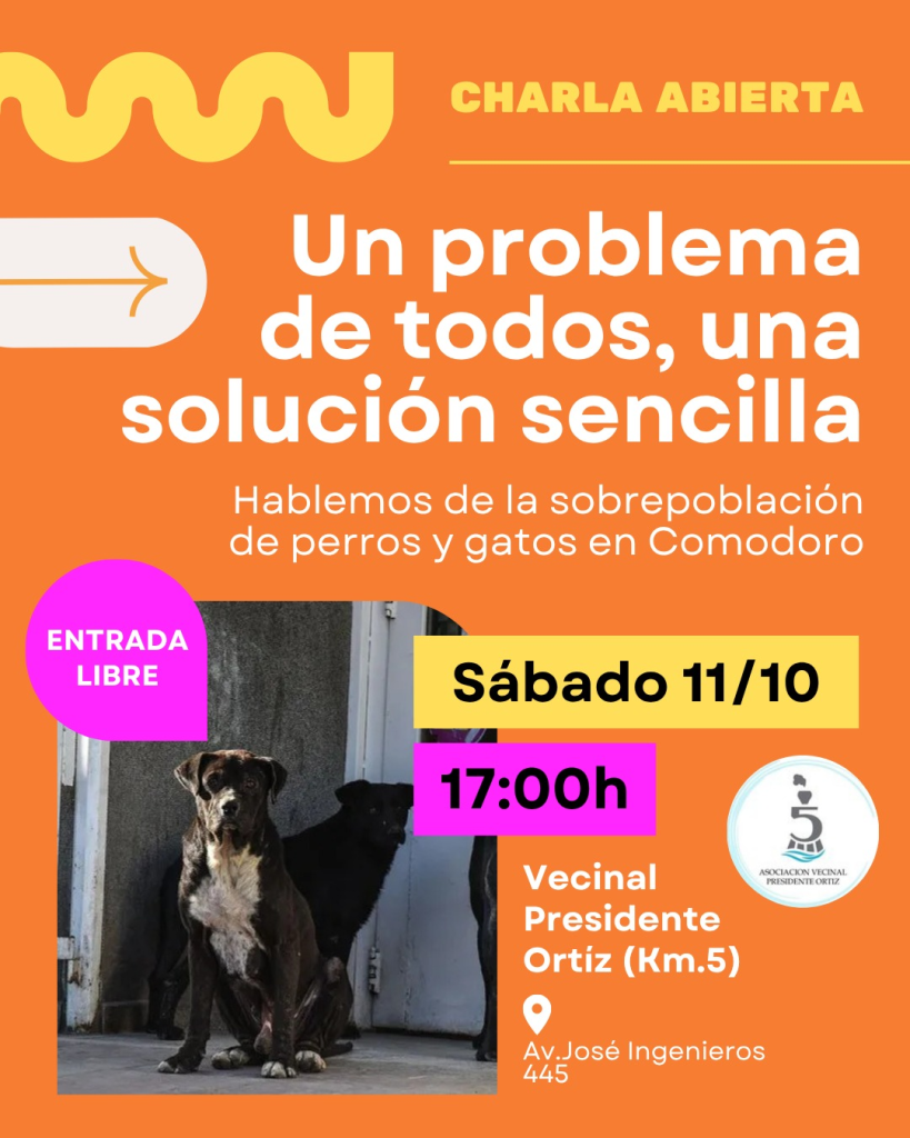 En tanto, la proteccionista invitó a toda la comunidad a la charla que se estará dando el sábado a las 17 horas, en la vecinal de KM5: «Invitamos a toda la comunidad y a todas las vecinales o grupos de personas. No hace falta que sea una vecinal, cualquier grupo de personas. Hemos dado la charla con gente del Rotary, con centros de jubilados, cualquier grupo que quiera saber sobre el problema y la solución. Me pueden encontrar en Instagram como Virginia Animalista o en Comodoro Animal (Instagram y Facebook), nos organizamos y vamos”.