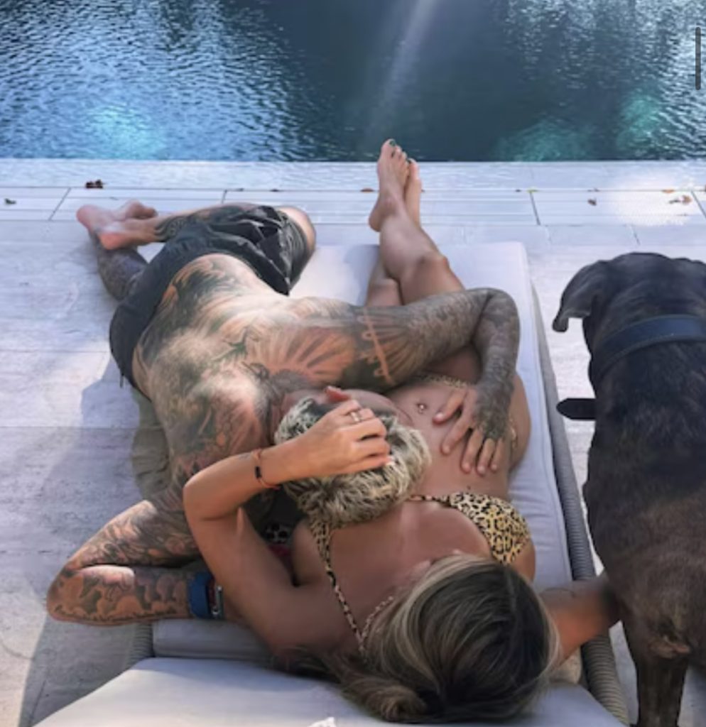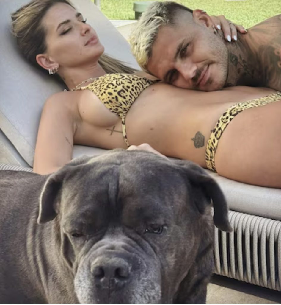 La foto tomada desde arriba, en la misma reposera, con Tano, el Dogo de Burdeos de la familia Icardi-Nara, acostados en el pequeño espacio que tiene a disposición. La cabeza de Icardi está sobre el pecho de Eugenia y la mano en la panza, gesto que se suele asociar mucho con los embarazos, por esta razón no tardaron en estallar los mensajes.