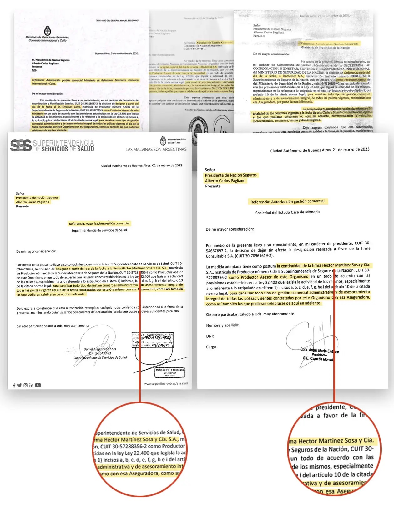 Las nuevas pólizas, después de 2020, ya generaban millonarias comisiones para productores. En 2021, se estableció por decreto a los entes del Estado la obligatoriedad de contratar Nación Seguros. Todos los contratos se intermediaban y la gran mayoría caían en manos de Héctor Martínez Sosa, marido de la histórica secretaria de Fernández, o brokers cercanos.