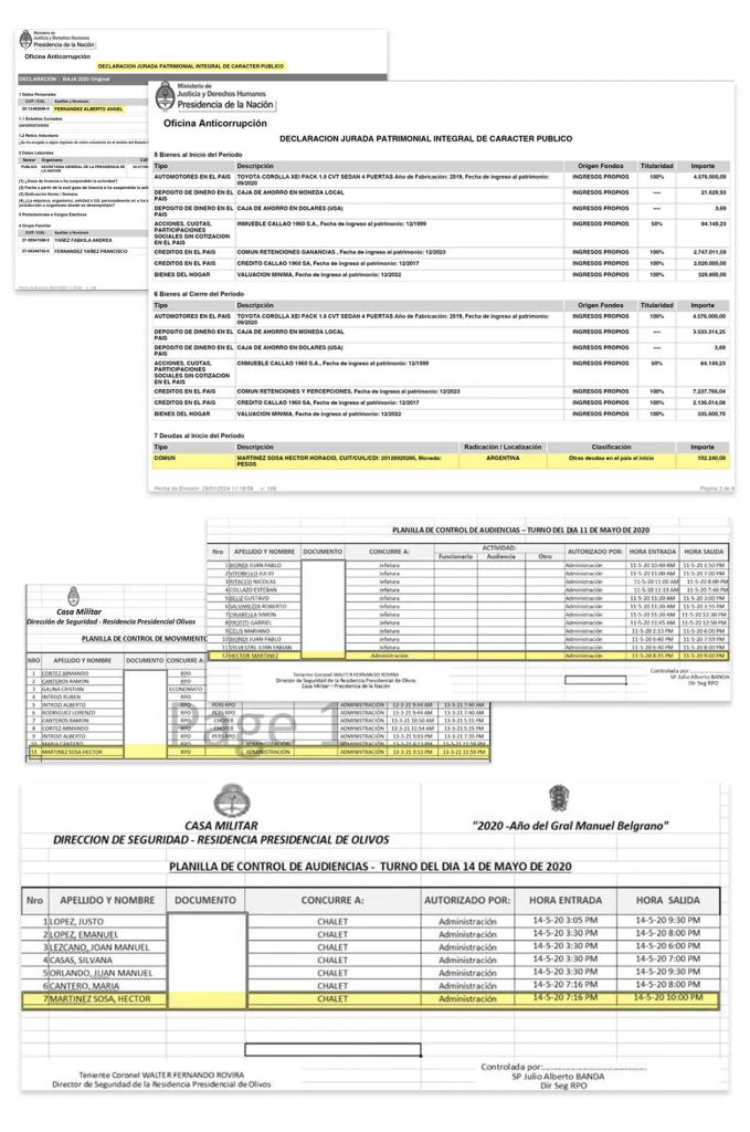 La relación entre ambos se mantuvo viva en los días de Fernández en Olivos. De acuerdo a los datos que publica Poder Ciudadano, el entonces presidente recibió a Martínez Sosa en Olivos el 8 de enero de 2020. El millonario productor ingresó a las 21.36 y se retiró a la 1.20 de la madrugada de la quinta presidencial. En los mismos horarios figuran también el ingreso de Guillermo Alonso, el segundo de Martínez Sosa en la empresa, y de María Guadalupe Cortés, productora de seguros. Además, estuvo en aquella cena Fernando Salim, también integrante del sistema que orbita alrededor de Martínez Sosa.