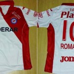 Son tres modelos. El tradicional (rojo con una banda blanca), el alternativo (blanco con rojo) y la tercera casaca es azul con una banda blanca.