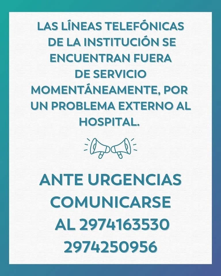 Las líneas telefónicas del Hospital Regional se encuentran fuera de servicio debido a fallas técnicas. Así lo informaron oficialmente este viernes, y destacaron que se trabaja para restablecer el servicio lo antes posible.