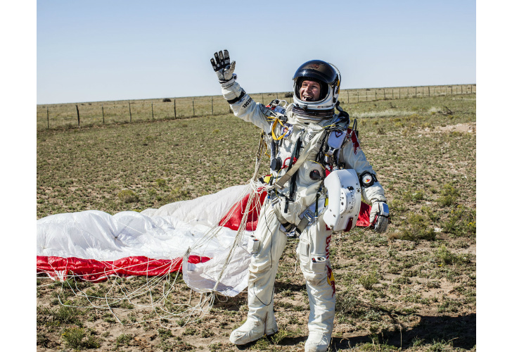 Tras dos horas y media de ascensión, el experimentado paracaidista de 43 años de edad abrió la compuerta y se lanzó al vacío: la caída libre duró cuatro minutos y 19 segundos. La hazaña fue seguida en directo por varios millones de telespectadores por YouTube.