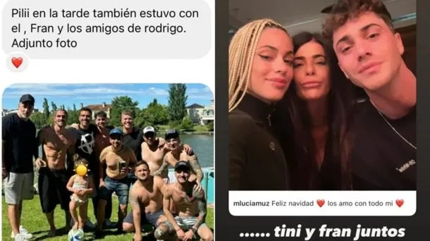 «En la tarde también estuvo con él, Fran, y los amigos de Rodrigo. Adjunto foto”, expresó un seguidor a la periodista y subieron la foto donde se los puede ver festejando en una quinta.Mariana Stoesel, la madre de Tini, subió una foto con sus hijos donde demostraba que celebraban Navidad juntos. Todo parece indicar que celebraron la Nochebuena juntos, pero no se fotografiaron.