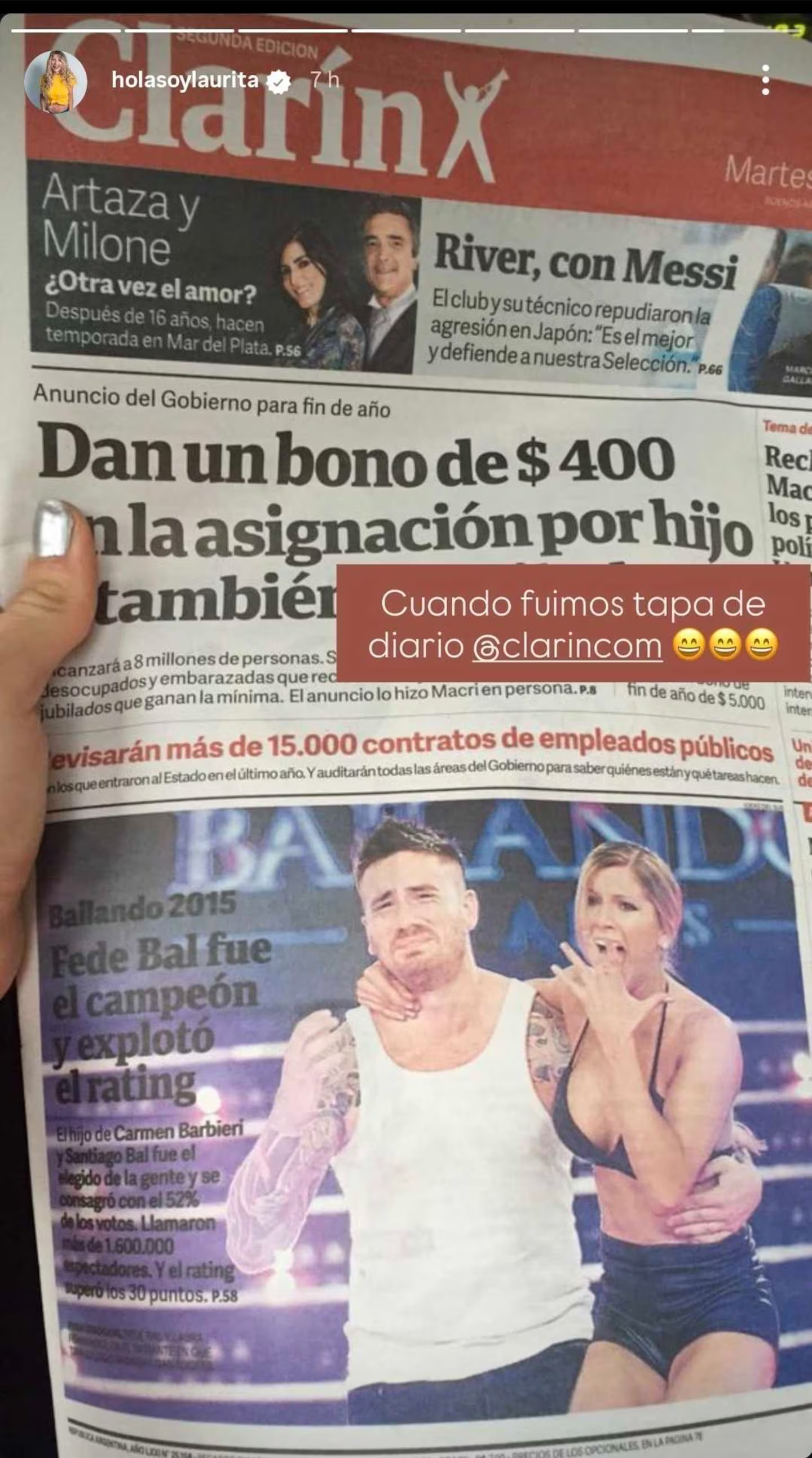 “Cuando fuimos tapa del diario Clarín”, escribió la artista en una postal que compartió en sus historias de Instagram.