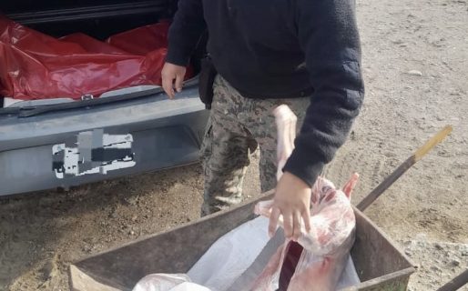 Se dio intervención a las autoridades del SENASA, Área Inocuidad Comodoro Rivadavia, incumpliendo transporte de carne, siendo transporte no apto y no habilitado, con falta mantenimiento cadena de frío, falta manipulación alimentos, como también sin documentación que acredite comercio legal mediante habilitación.