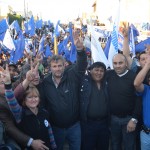 La lista Azul montó un escenario para que estuvieran todos los candidatos de la lista que fueron ovacionados por los miles de petroleros que le dieron folclore con las banderas de sus respectivas empresas.