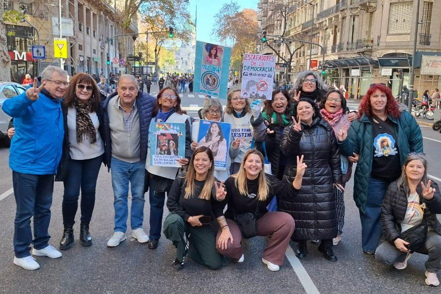 Este miércoles, dirigentes y militantes peronistas se movilizaron masivamente a la Plaza de Mayo en Buenos Aires para respaldar a Cristina Fernández de Kirchner, tras la confirmación de su condena a seis años de prisión por parte de la Corte Suprema en el caso Vialidad y la posterior concesión de prisión domiciliaria por el Tribunal Oral Federal 2.