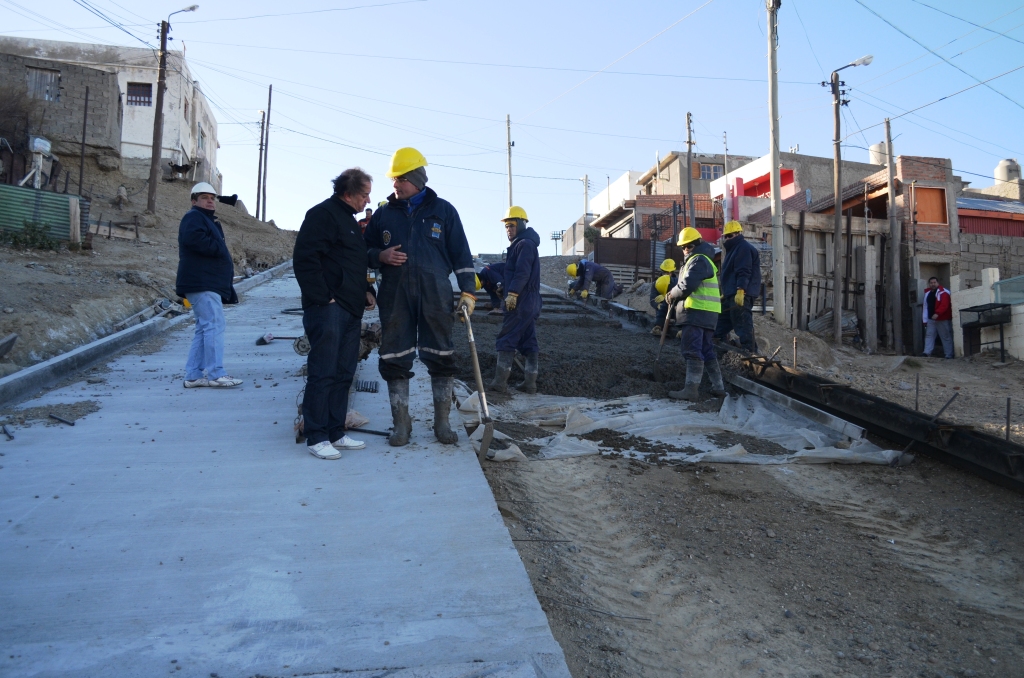 El viceintendente observó los trabajos que se llevan en la parte alta de la ciudad, donde avanza a buen ritmo la obra de pavimento en el barrio Pietrobelli.