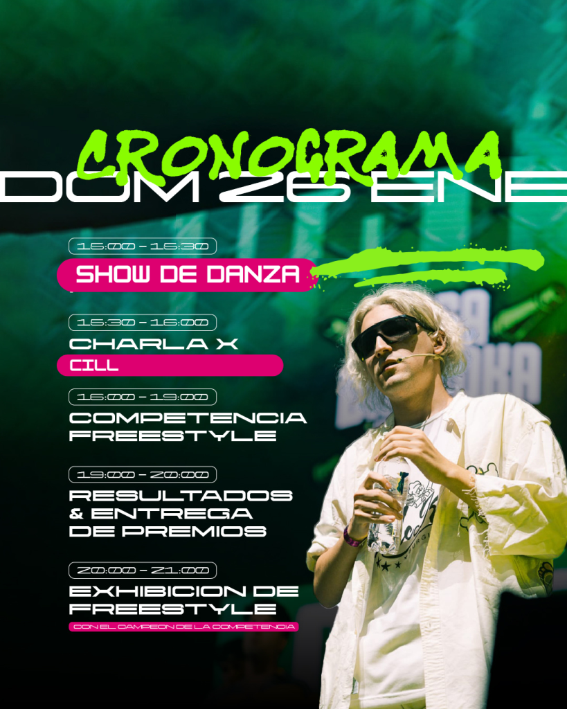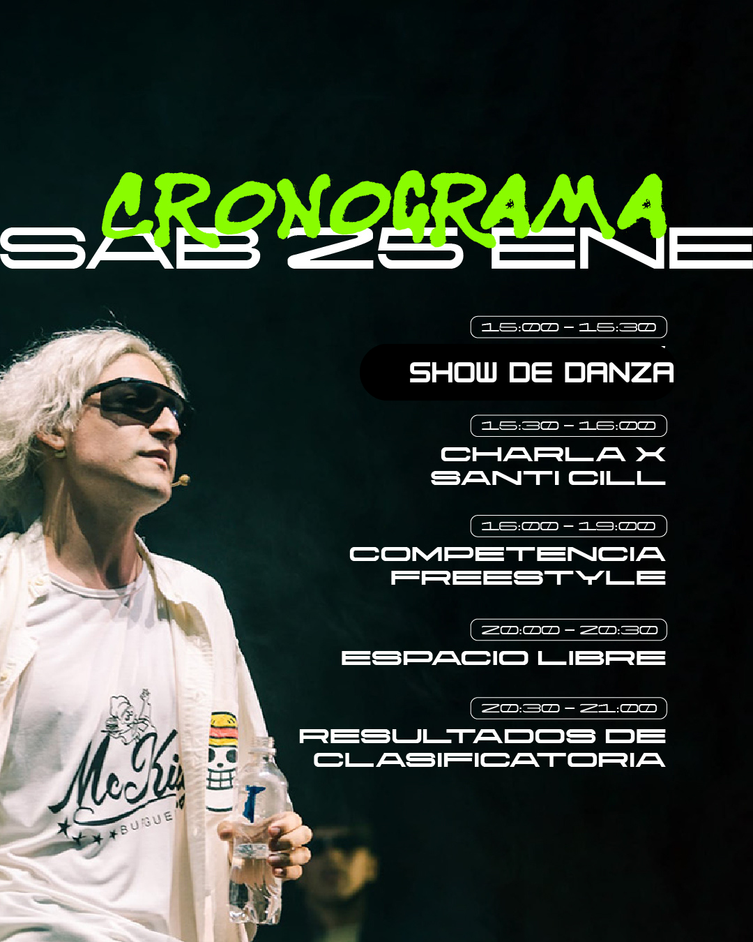 20:00 – 21:00 hs: Exhibición de Freestyle con el campeón de la competencia