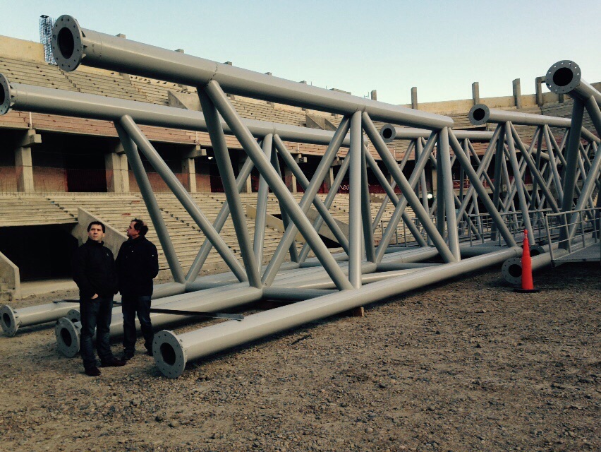 Se trata de estructuras de grandes dimensiones que llegan por partes a la cuidad, desde Mendoza. Son estructuras de 27 metros de longitud por 3,70 de ancho. Esta mañana el viceintendente recorrió las obras en ejecución.