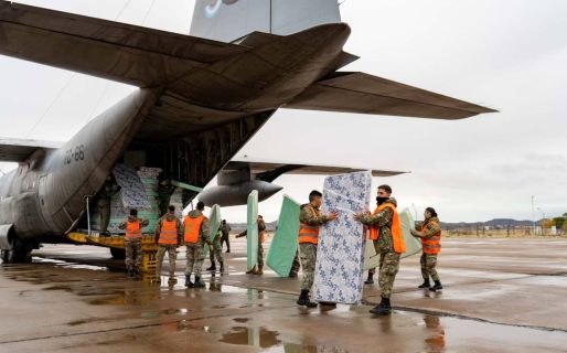 Mediante gestiones realizadas por el gobernador de la provincia del Chubut, Ignacio “Nacho” Torres, con el Gobierno Nacional, debido al temporal de lluvia y nieve que afecta a la provincia, arribó este domingo, a Comodoro Rivadavia, un avión Hércules de la Fuerza Aérea Argentina con provisiones de colchones, ropa y calzado.